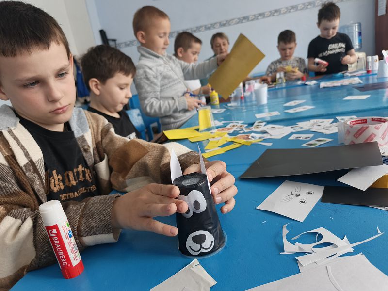 Самые юные орлята из отряда «Звоночки» были увлечены творческим процессом. Они с помощью цветной бумаги, ножниц, маркеров и пластиковых стаканчиков, создали разных животных. В итоге у каждого получился свой герой: собачка, кошка, цыпленок, корова, зайчик и медведь.