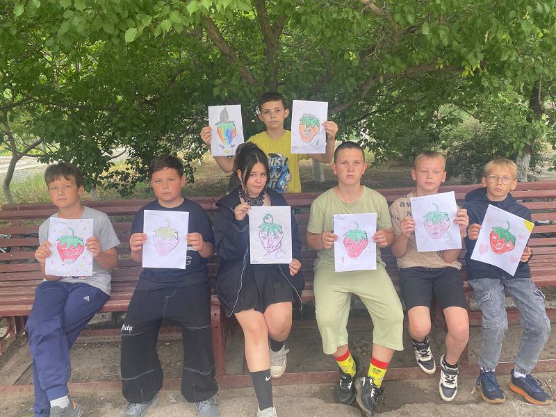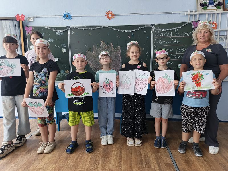 Сегодня, 18 июня 2025 года, в нашем лагере «Солнышко» мы посвятили свой день вкусной и ароматной летней ягоде – клубнике, и назвали его Днем клубничного настроения. Каждый отряд получил свое творческое задание, которое нужно было выполнить в течение всего дня. Самые старшие ребята, из первого и второго отрядов, «испекли» клубничные торты и из контура клубники создали интересные, оригинальные рисунки. Девчонки и мальчишки третьего отряда сделали себе шапочки-головки, украшенные клубникой, прикрепили клубничные эмблемы к одежде и раскрасили раскраски, где была изображена клубника. Получился у нас день с настоящим клубничным настроением, который подарил всем присутствующим только положительные эмоции. Следует добавить, что ребята не только проявили свои творческие способности при выполнении заданий, но ещё и узнали много информации о пользе клубнике, о том, какие витамины она содержит и какую пользу приносит нашему здоровью.