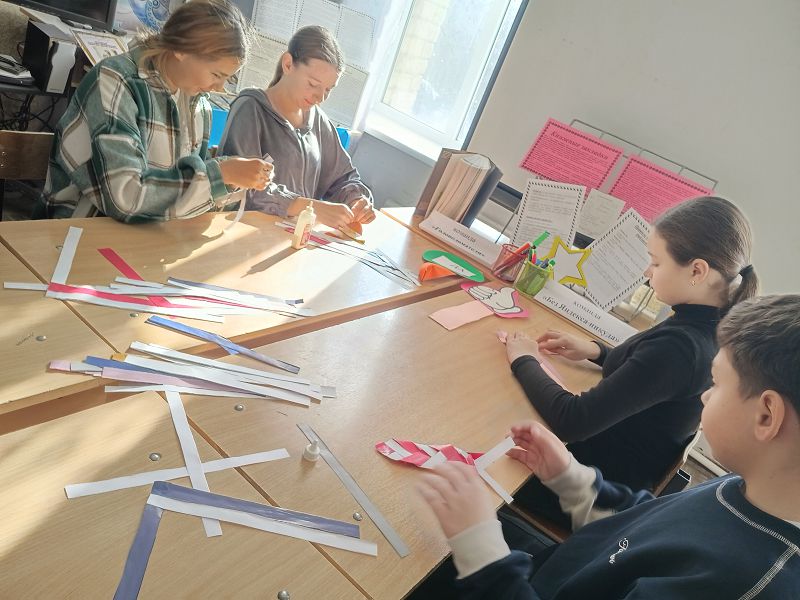 В завершении встречи библиотекарь предложила детям создать свою уникальную именную закладку для книги из цветного картона и фурнитуры.