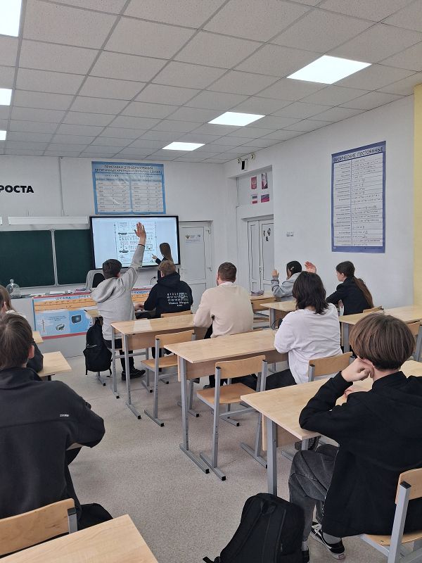 На занятии ребята смотрели видеоинтервью с министром промышленности и торговли РФ Антоном Алихановым, обсуждали примеры трудовых династий, говорили о том, какие профессии сегодня особенно востребованы в промышленности.