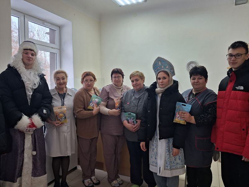 Так, учащиеся 9б класса провели акцию «Российский Дед Мороз» они поздравили работников пожарной части п.Быстрогорский и медперсонал отделения сестринского ухода МБУЗ Быстрогорской больницы.