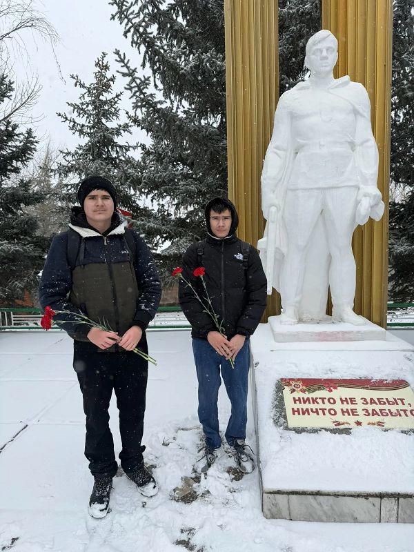 В преддверии этого великого праздника учащиеся 8-9 классов возложили цветы в память о тех, кто защищал нашу Родину от врага.